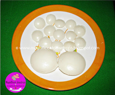 A special steamer rack that has very small depressions is needed to make small sized Iddalis. Iddali is made by grinding rice and urad dal (black gram) and kept fermenting overnight. A little salt is also added to the dough during preparation. Various methods are prevalent in different regions and the ingredients also may vary from place to place. Nevertheless, Iddali is a wonderful dish enjoyed by everyone here.